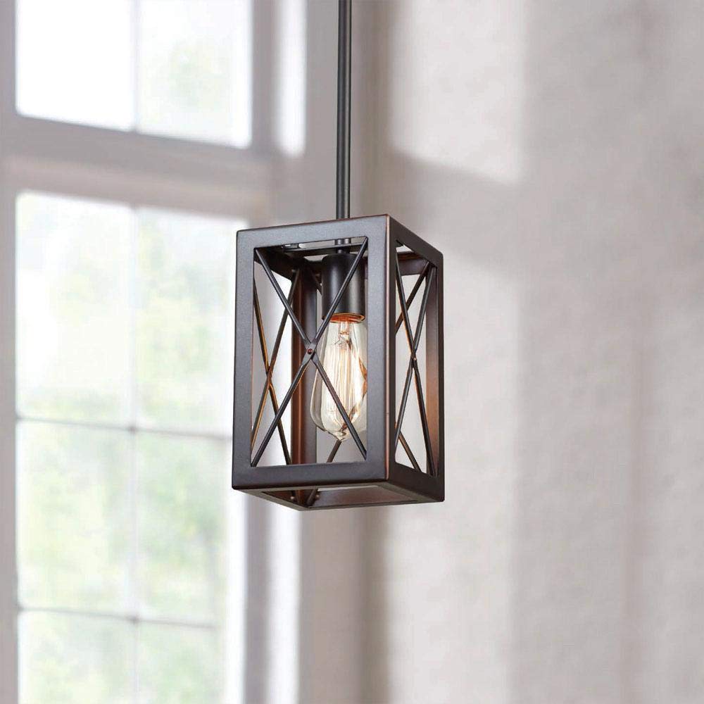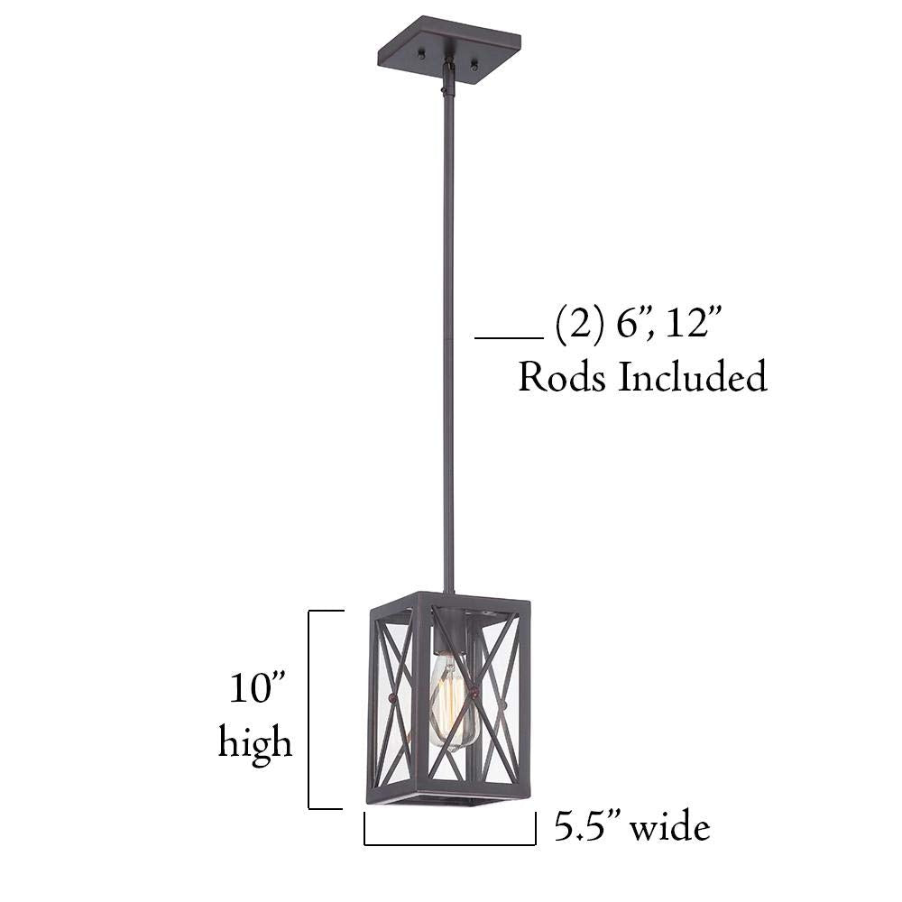 The Home Decorators Collection mini pendant light fixtures feature a simple, modern rustic style with cage style design that complements any decor. The protective royal bronze finish and steel construction will look great and last for years to come. These ceiling mounted lights install easily and come with two 6 in. and four 12 in. hanging rods that can be used in any combination to create the ideal hanging length. These fixtures use 60-Watt light bulbs, and a gas lamp style light bulb is not included.