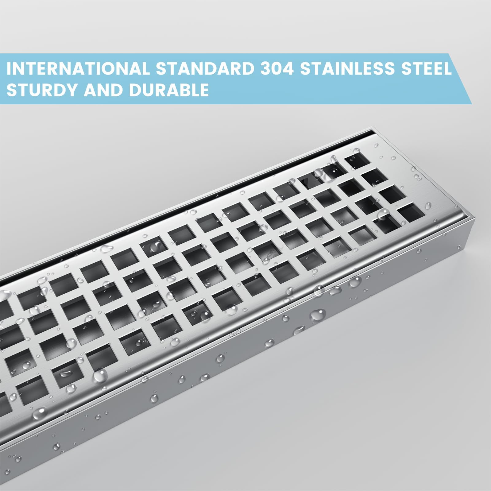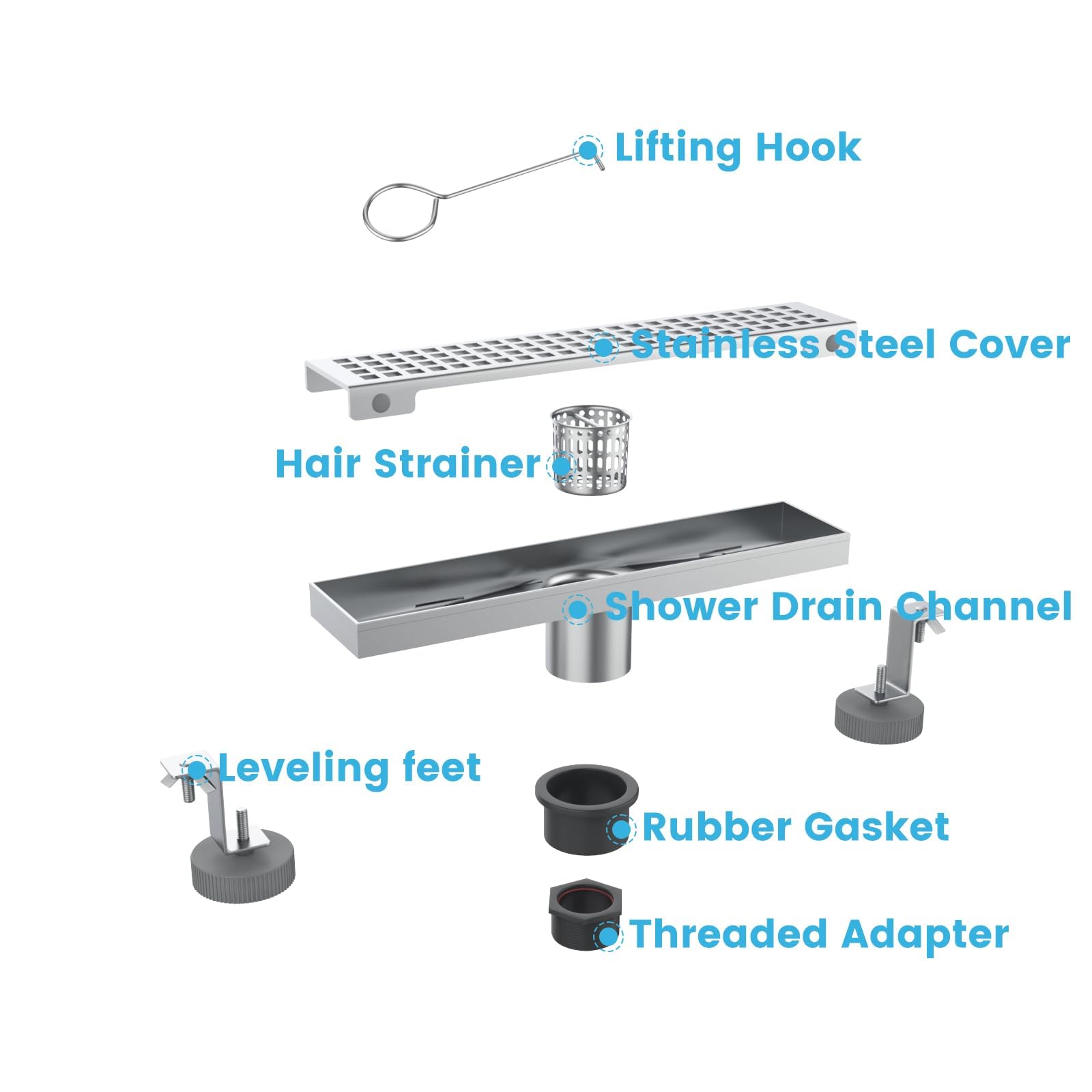 IDEALHOUSE 2024 New Linear Shower Drain, Brushed Nickel Shower Floor Drain, High Flow Shower Drain Kit with Removable Grid Cover, Hair Filter, Food-Grade SUS 304 Stainless Steel